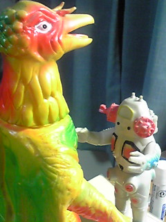 あたり前だがこのようにサイズが違うと両者対峙したとき目線があわない。これで何を思い出すかというとやはり昭和ガメラか。両者あさっての方向を見つめながら組み合い戦うことが多かった気がする。それを含めての魅力が昭和ガメラだ。