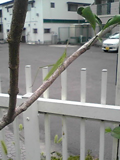 日本最大の緑、枝にとまる。